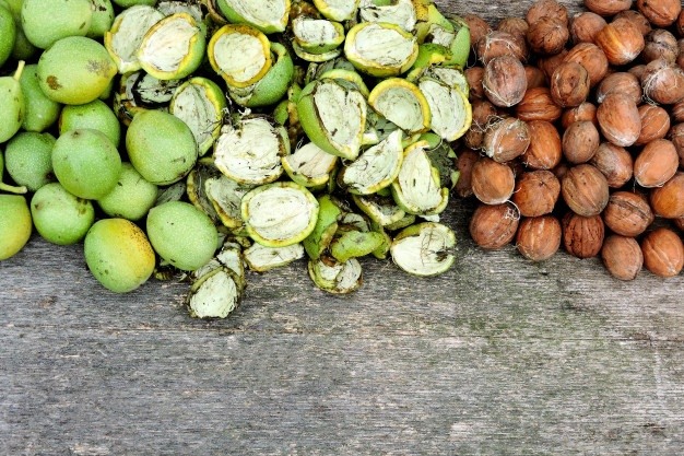 Decoct din coji de nuci verzi. La prepararea acestui produs se pun la fiert cojile a 5–6 nuci verzi într-un litru de apă. Se lasă la foc mic până încep să clocotească. După un sfert de oră de clocot, se iau de pe foc. Apoi se lasă la răcit și pot fi consumate. Decoctul din coji de nuci verzi este recomandat pentru tratarea afecţiunilor ficatului, inclusiv a hepatitei cronice, dar şi pentru tratarea afecţiunilor bucale, inclusiv a bolilor gingiilor. Extern, fiertura cu coajă de nuc ajuta la afecțiunile cutanate, pentru combaterea mătreții și pentru colorarea părului.